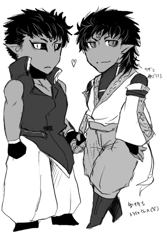 ぶっちゃけますと今後この二人は分離して双子みたいな状態になるんですけどね。本来の姿なら見分けがつくんですが、人間形態だと瞳の色しか違いがなくて見分けにくいのであえてヴァストが襟足を伸ばしてみたり。