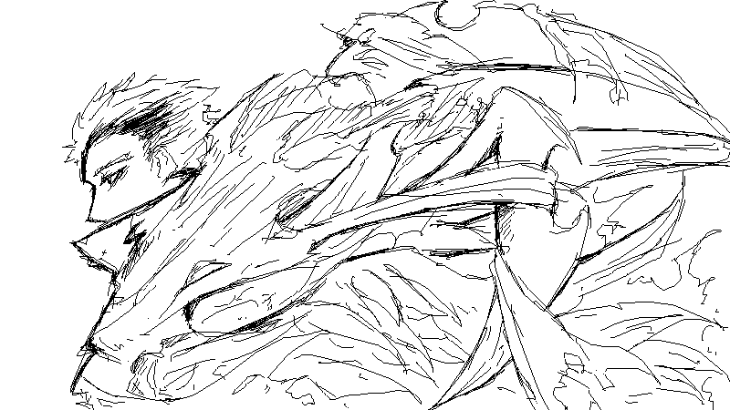 描いてて思うんだけど、あの双子たちの服って地味に難しい。細かいんだよね。あとナイブズの服に関しては全くわからないので勝手にそれっぽい服着せてるだけなんですけど←