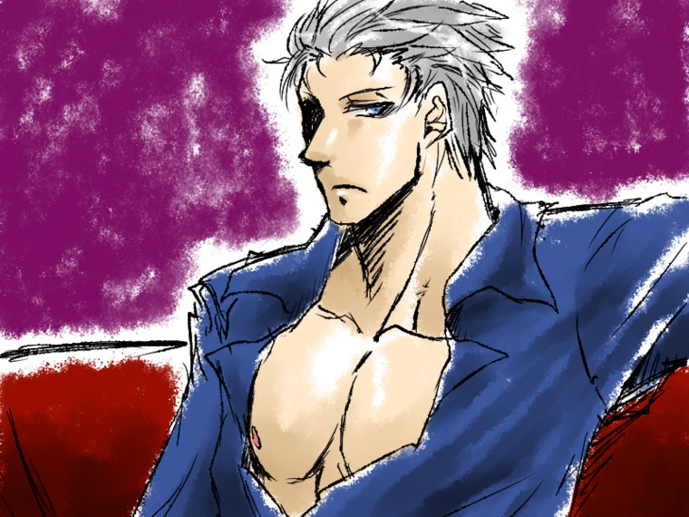 殴り書きバージル。いつも髪型が安定しないんだよ兄貴はよー。実際ゲームでも立ち絵とゲーム内グラフィックの髪型違わない?ゲームグラフィックの髪型のほうがもさもさしてて好き(笑)